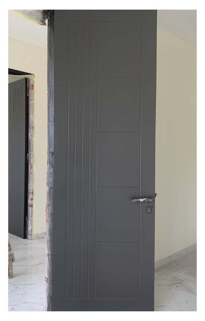 Metode finishing yang memberikan warna solid pada pintu dengan ketahanan gores yang bagus dan permukaan halus
