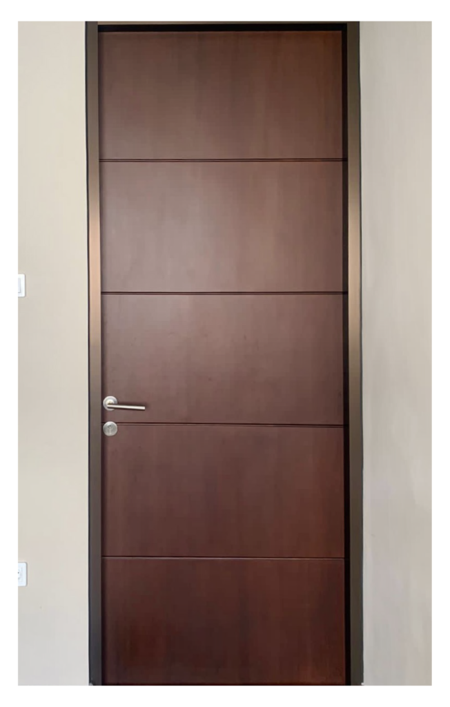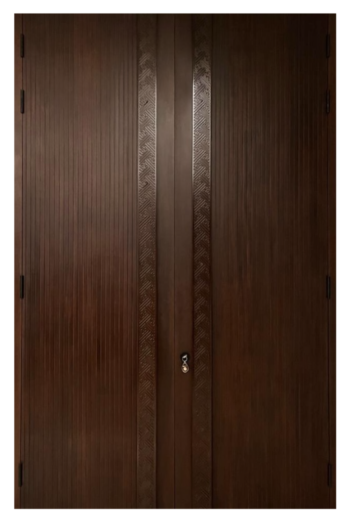 Metode finishing yang masih memperlihatkan serat alami kayu dan memberikan kesan natural pada pintu.